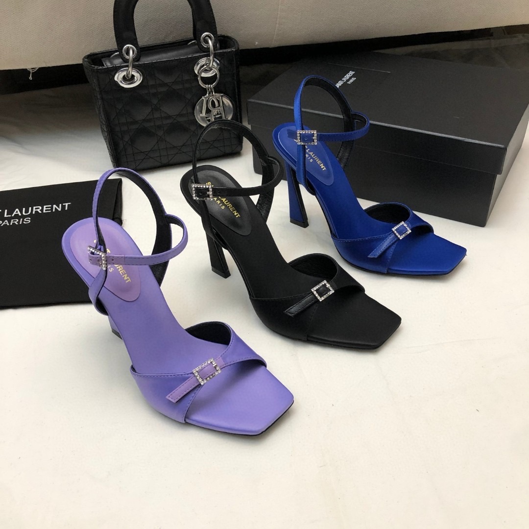 首页 / Saint Laurent YSL Silk Buckle Open Toe 10.5cm Slide Sandal